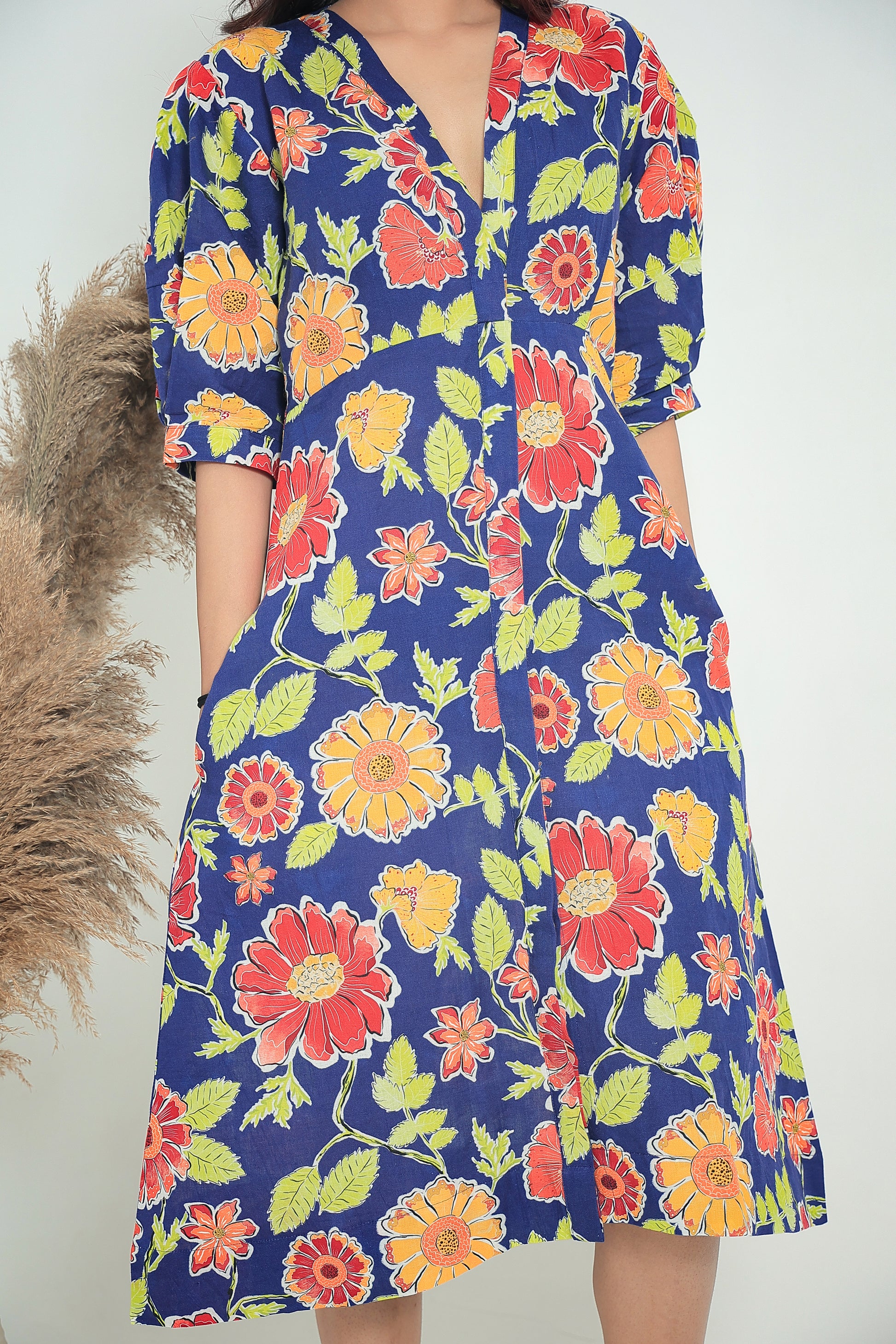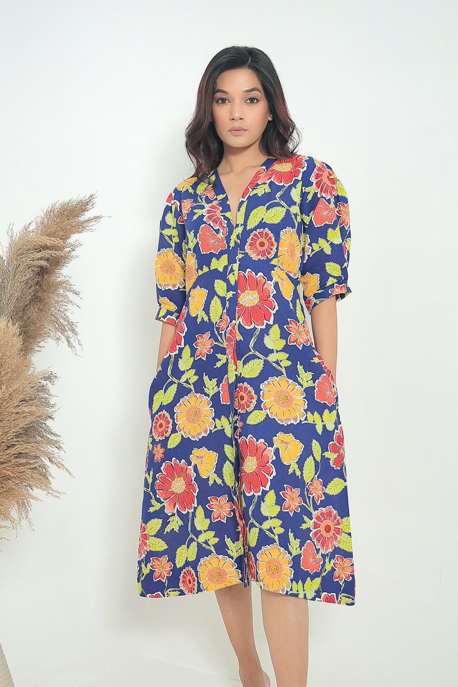 Elevate your casual style with this floral linen dress that combines ease and elegance for any season. The highlight of this piece is the vibrant floral print keeps things fun, while the soft linen fabric adds an easy-breezy touch. Perfect for sunny days or relaxed day-outs & evenings with friends & family, this blue dress has you covered across seasons.