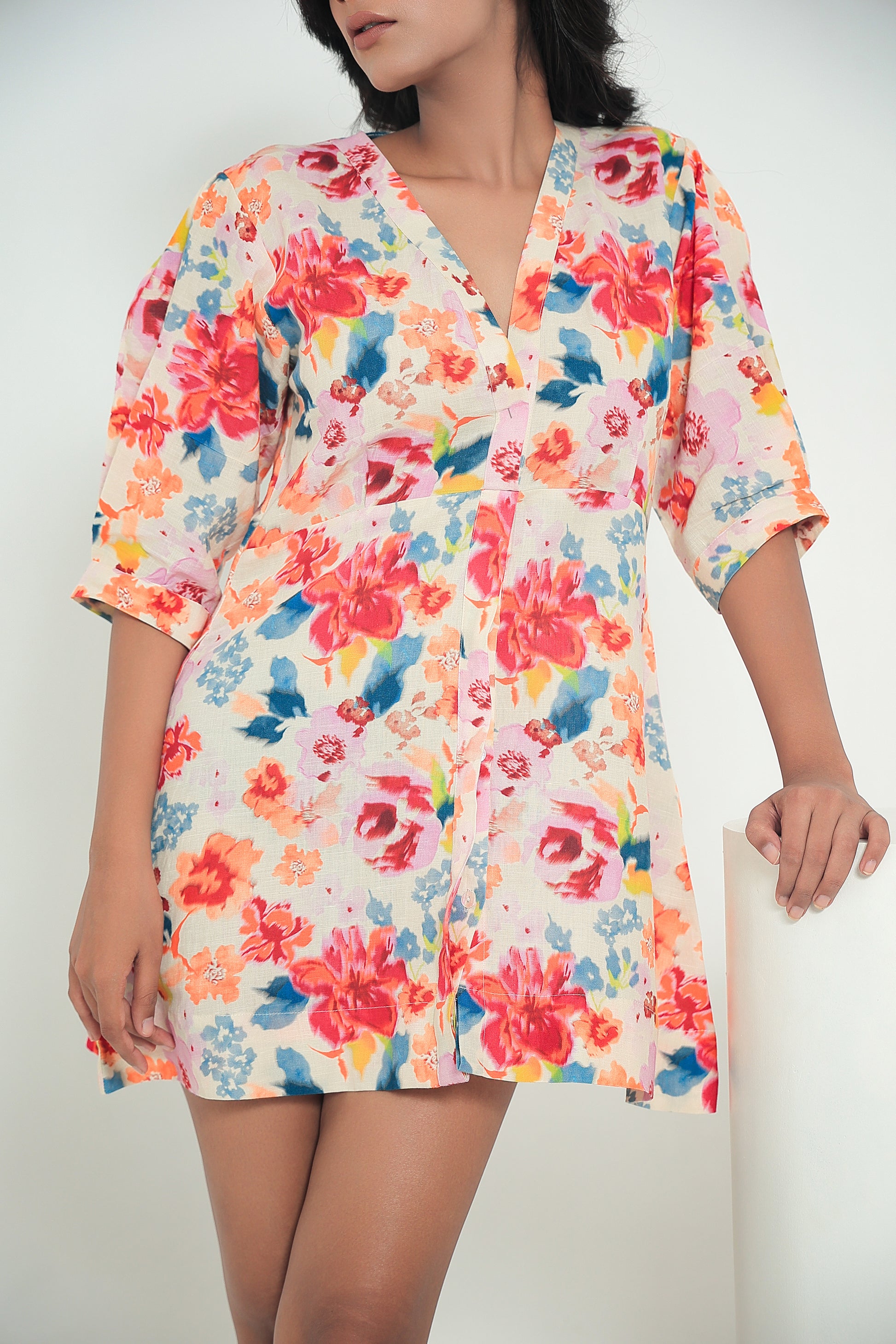 Elevate your casual style with this floral linen dress that combines ease and elegance for any season. The highlight of this piece is the vibrant floral print keeps things fun, while the soft linen fabric adds an easy-breezy touch. Perfect for sunny days or relaxed day-outs & evenings with friends & family, this blue dress has you covered across seasons.