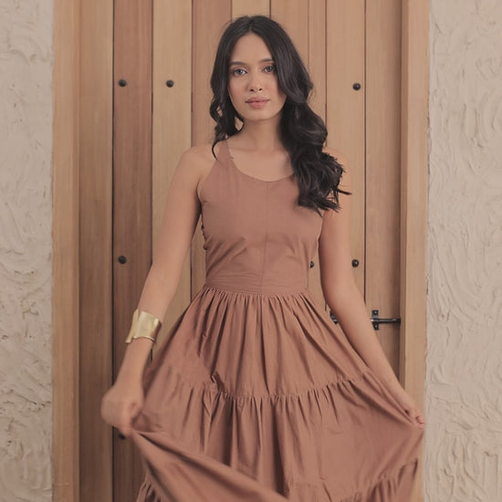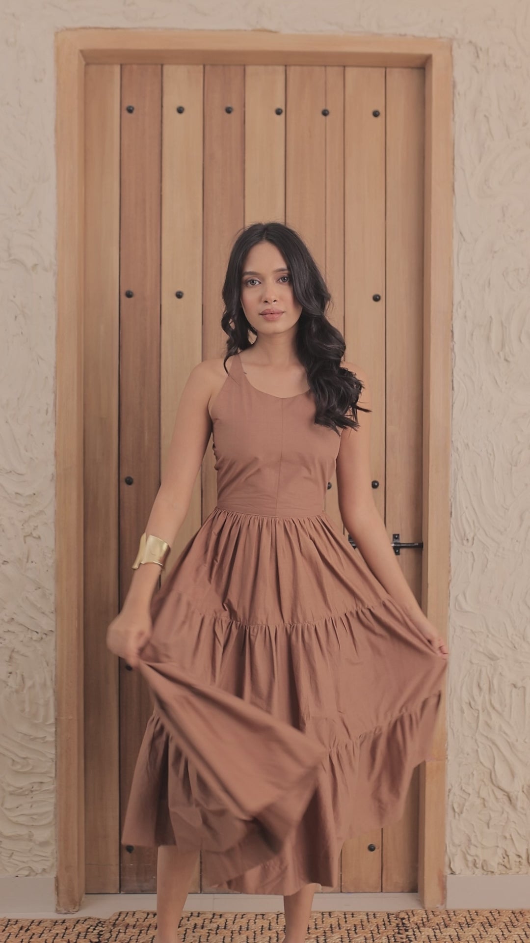 The best part about this trendy dress is that it is made with a stretchier fabric, allowing your body to feel extremely comfortable. The trendy tailored tiered design adds a little more drama to this piece. This dress can be worn both casually or classily with the backless cutout. While the rich brown tone keeps it super chic, this is an ultimate wardrobe piece.