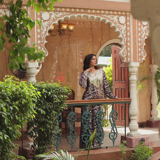 Crafted from rich lurex fabric, this kaftan exudes elegance with every shimmer. Its heavy, flowy drape makes it the perfect statement piece for festive celebrations or wedding occasions. Despite its grandeur, it promises unmatched comfort — allowing you to move effortlessly while looking effortlessly chic. A perfect blend of trend and tradition, this kaftan redefines festive elegance.